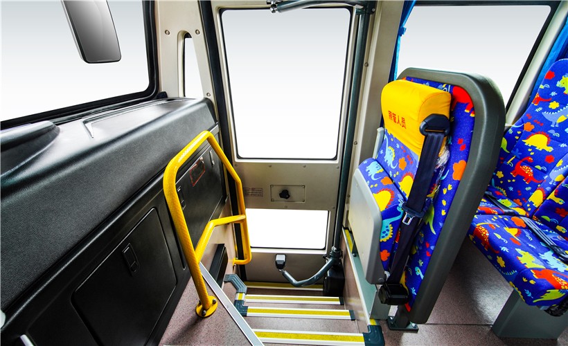該車外觀借鑒歐美校車風(fēng)格,是嚴(yán)格按照GB24407-2012《專用校車標(biāo)準(zhǔn)安全技術(shù)條件》進(jìn)行設(shè)計(jì)制造,更加適合中國(guó)道路運(yùn)輸條件的新款校車。車頭采用整體沖壓的可翻轉(zhuǎn)長(zhǎng)頭設(shè)計(jì),前伸式發(fā)動(dòng)機(jī)布置;配備油箱防撞擊裝置;采用盤式制動(dòng)器及新型緩速器,有效提高行車制動(dòng)安全性;底盤車架采用整體貫通式直大梁,車輛前后裝有大截面高強(qiáng)度防撞梁,優(yōu)化設(shè)計(jì)懸掛及轉(zhuǎn)向系統(tǒng)并配備前后穩(wěn)定桿,極大提升車輛行駛安全。內(nèi)飾設(shè)計(jì)色調(diào)清新活潑,乘坐空間寬大舒適;駕駛員視野360度無盲區(qū);配備有停車信號(hào)臂、下封閉上推拉式側(cè)窗、發(fā)動(dòng)機(jī)艙智能滅火裝置等,配備校車停車系統(tǒng)和限速裝置,可加裝胎壓報(bào)警系統(tǒng)和智能計(jì)數(shù)系統(tǒng),還可配備安全帶集中解鎖功能,安全性能更高,進(jìn)一步保障學(xué)生安全。為家長(zhǎng)和學(xué)校提供更加安心、貼心和放心的保證!