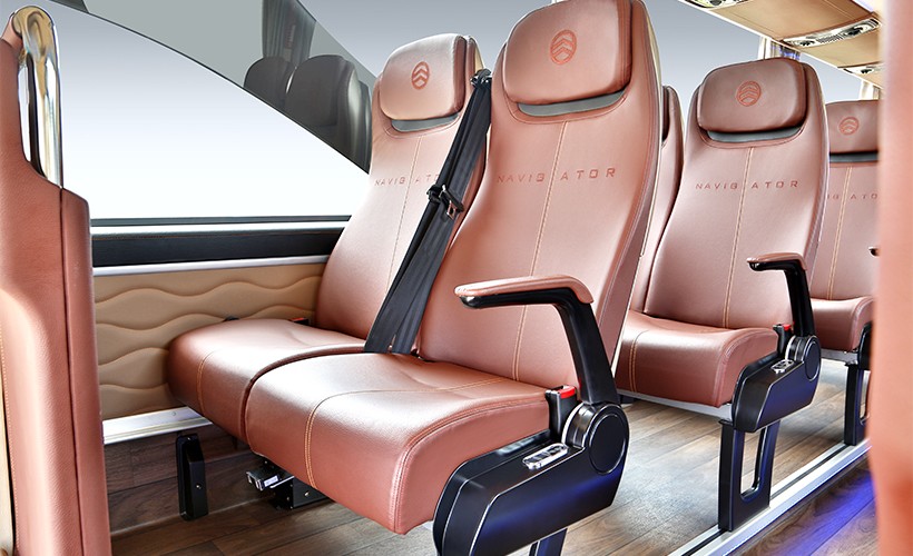 駕駛員視野設(shè)計(jì)采用比歐盟法規(guī)更嚴(yán)苛的以色列標(biāo)準(zhǔn),帶來(lái)更寬廣的駕駛視野;可旋轉(zhuǎn)駕駛座椅,便于司機(jī)進(jìn)出,并帶有通風(fēng)、按摩等功能;整體式電動(dòng)升降司機(jī)窗,真皮包裹多功能方向盤,操作更便捷;全液晶數(shù)字儀表,功能強(qiáng)大,科技感十足;15.6寸超大中控大屏,集成了空調(diào)、音響、導(dǎo)航、藍(lán)牙、車聯(lián)網(wǎng)等多項(xiàng)功能。配備一鍵啟動(dòng)、自動(dòng)變速器、電子手剎和帶藍(lán)牙功能的駕駛區(qū)獨(dú)立音響。輕松的駕駛環(huán)境,讓旅途安全更有保障。