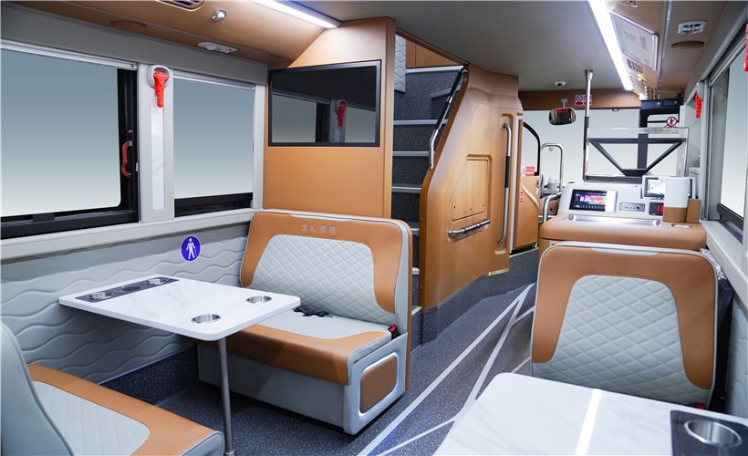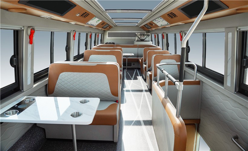 車內(nèi)每一個能與乘客觸碰處都做了軟包處理,最大程度呵護乘客安全。進口木紋地板革,人體工學座椅,并配置USB充電接口,滿足乘客充電需求;此外,車內(nèi)專設(shè)無障礙乘車設(shè)施和輪椅區(qū)以及愛心專座,極大提升乘坐舒適體驗;在車輛安全配置上, 360度環(huán)視系統(tǒng),前向防撞、車道偏移預(yù)警系統(tǒng),電動后視鏡、胎壓監(jiān)測等一系列黑科技, 讓車輛安全運行更有保障。