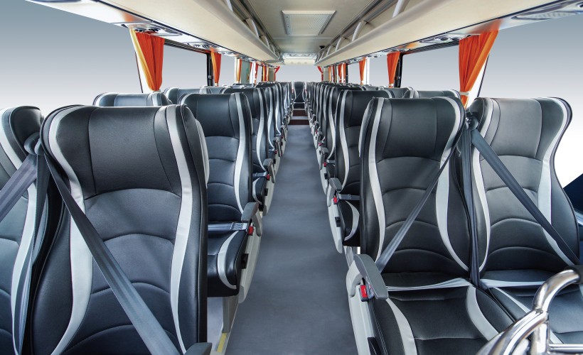 為保證乘客和駕駛員良好的乘坐體驗,在駕駛艙的布局、司機及乘客座椅、閱讀燈和空調(diào)出風(fēng)口都做了充分的考慮。水波紋造型中頂板,跑車造型出風(fēng)口,無釘化整體內(nèi)飾,配合人機工程座椅,全面貼合人體坐姿。整車應(yīng)用NVH靜音技術(shù),在吸聲隔聲結(jié)構(gòu)設(shè)計基礎(chǔ)上應(yīng)用了大量隔音降噪特種材料,營造出安靜的乘坐環(huán)境,讓乘客的旅途更加輕松愜意。