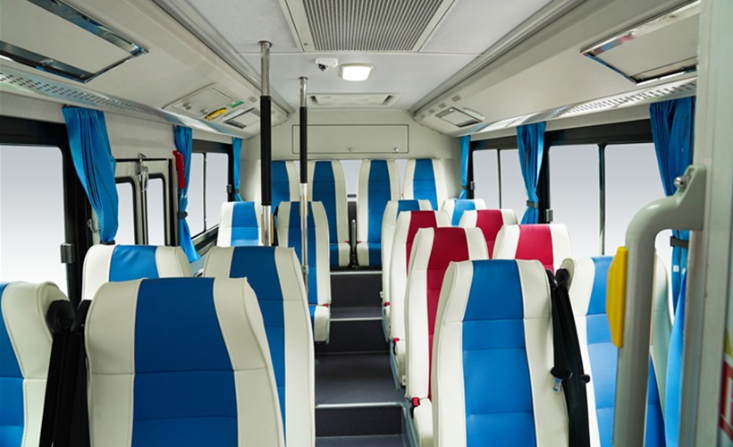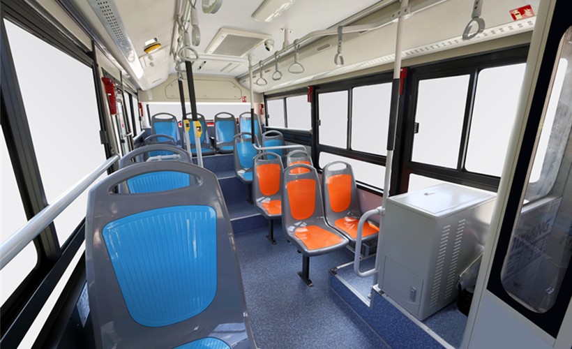行業(yè)少有的6米級車型前中開門設計,前門處通道寬度達 838mm,確保乘客上下車更加快捷、有序。內(nèi)飾引入了最新的CMF設計理念,內(nèi)部空間寬敞明亮,色調(diào)簡潔明快。特別選用的黑色防滑套扶手桿,冬季讓站立區(qū)乘客握抓扶手的觸感更好。此外,環(huán)境氛圍照明系統(tǒng),大視野側窗玻璃,超大液晶顯示屏等人性化配置帶來更加舒適的乘坐體驗。最大載客數(shù)可達38人,并有多種座椅狀態(tài)可選,滿足不同運營需求,創(chuàng)造更多價值。