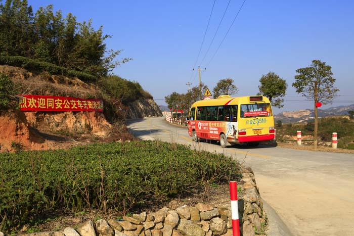 在淡溪村,竹筍、茶葉是主要經(jīng)濟作物,生態(tài)茶園遍布,而且擁有五松瀑布、雄獅瀑布等自然景觀。然而,竹筍的保鮮時間短,沒有開通公交車前,大多數(shù)村民都將竹筍制成筍干,再用摩托車運送到山下賣,或者只能零散地賣給少數(shù)游客。金旅公交車開進淡溪村后,從村到鎮(zhèn),村民們可以及時將新鮮的竹筍、茶葉帶到鎮(zhèn)里、城區(qū)銷售,讓大家都得以一嘗山珍之鮮;從城到村,市民也可隨安全快捷的金旅公交車來此,懷抱大自然,欣賞別樣的高山村莊風(fēng)光,還能帶動淡溪村土雞、土鴨等土特產(chǎn)品的銷售。幾位聞訊而來的老先生對這條線路的開通贊不絕口:“我們昨天在報紙上看到這里通車的報道,今天就坐著這個公交車來看看,這個公交車,好!”