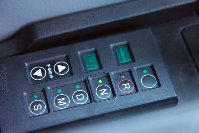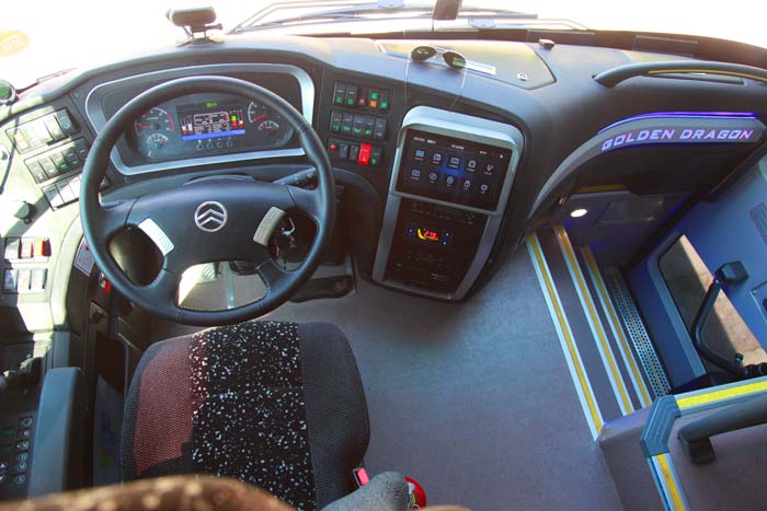 在高度重視乘坐舒適性之外,新錦程對于駕駛區(qū)及駕駛者的關(guān)注同樣超過以往,這一點(diǎn)體現(xiàn)了國內(nèi)客車設(shè)計(jì)制造理念的變化與進(jìn)步。在過往試駕客車時我都會發(fā)現(xiàn)一個問題,設(shè)計(jì)者對于駕駛區(qū)的設(shè)計(jì)相對簡單,不愿為此增加整車成本。新錦程首先創(chuàng)新性地采用了一款具有記憶功能的空氣懸浮駕駛員座椅,大大提高了駕駛員長時間駕駛的舒適性。在功能區(qū)分區(qū)及按鍵分布上面,充分考慮到駕駛員使用習(xí)慣,盡可能做到易于識別和便于操控。駕駛區(qū)左側(cè)主要為擋位、動力模式切換及安全裝置控制區(qū),右側(cè)為燈光、車門控制區(qū),中控臺則集成了多功能顯示屏、影音系統(tǒng)、自動空調(diào)、導(dǎo)游廣播系統(tǒng)及行車記錄儀等,整體布置緊湊而層次分明。