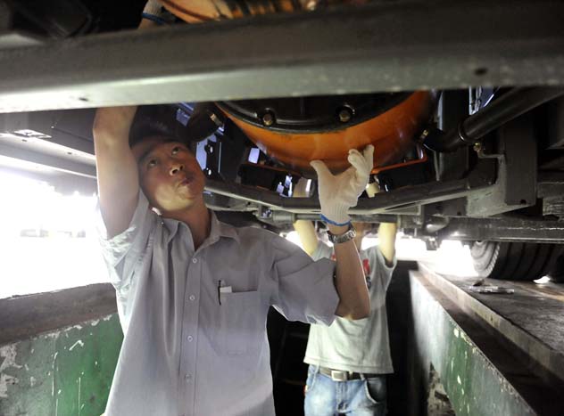 在金旅生產(chǎn)線上,每一輛客車的雕琢,大智慧在左,細(xì)致專注在右。2008年,金旅國(guó)內(nèi)首條大型客車整車陰極電泳生產(chǎn)線正式投產(chǎn);2010年,金旅再度領(lǐng)先行業(yè),將大巴裝配生產(chǎn)線由半承載車型的脫殼電泳生產(chǎn)工藝,切換為全承載車型的裝配工藝;2011年,金旅特殊車輛生產(chǎn)線正式投產(chǎn),懷著打造世界精品的夢(mèng)想,金旅工藝革新再次揚(yáng)帆。流水線數(shù)次的騰飛,人們因頂尖工藝而熟知金旅,卻不知背后依然鐫刻著技師人無(wú)數(shù)汗水和艱辛。