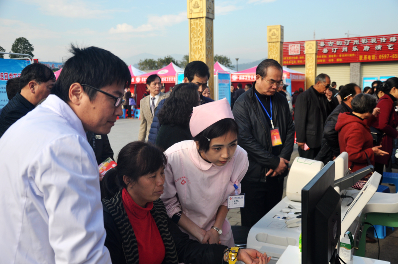 當(dāng)日10時(shí),在長(zhǎng)汀客家母親緣廣場(chǎng),“三下鄉(xiāng)”活動(dòng)啟動(dòng)儀式吸引了長(zhǎng)汀縣5000余名父老鄉(xiāng)親駐足觀看,其中107位觀眾當(dāng)場(chǎng)體驗(yàn)了服務(wù)車的體檢功能,并且馬上就拿到了打印的檢測(cè)結(jié)果,鄉(xiāng)親們紛紛樹(shù)起大拇指:“太方便了,比去醫(yī)院省時(shí)又省力”。