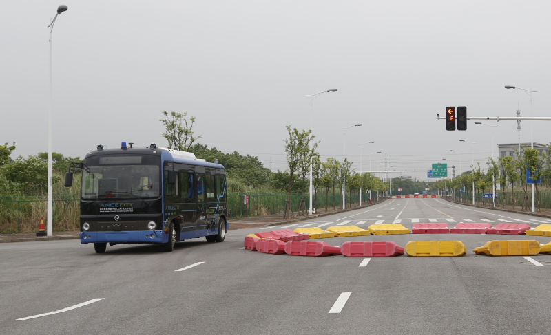金旅無人駕駛客車通過模擬環(huán)島