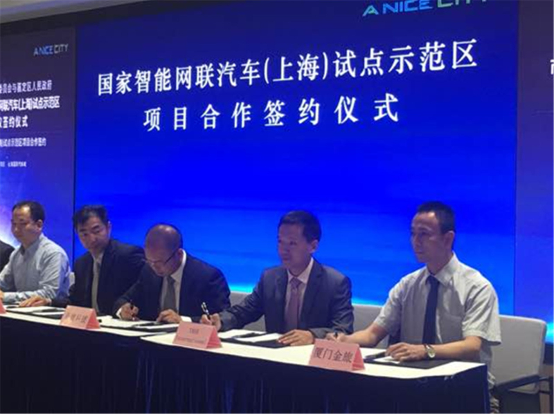 金旅(右一)于今年與國家智能網(wǎng)聯(lián)汽車(上海)試點(diǎn)示范區(qū)簽訂項(xiàng)目合作