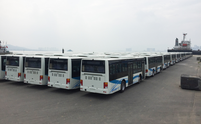 304臺金旅智能公交車在廈門碼頭發(fā)往加蓬