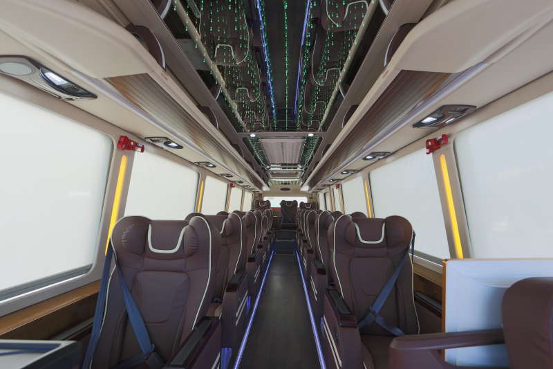 據(jù)悉,該批車輛每一處細(xì)節(jié)精益求精,帶頭枕的豪華大商務(wù)座椅,椅面柔軟,腿部和左右乘坐空間達(dá)到頭等艙水平,高鐵窗簾,軟包頂內(nèi)飾設(shè)計,可遙控的射燈及七彩LED氛圍燈,數(shù)字化自動溫控系統(tǒng),USB充電接口,車載冰箱及飲水機(jī)等給每一位駕乘者從視覺、觸覺、嗅覺和聽覺等方面帶來超越期待的享受。為滿足旅途的娛樂需求,車輛還配置全套點播功能的多媒體娛樂播放系統(tǒng),帶了四個高品質(zhì)的音箱及無線藍(lán)牙麥克風(fēng)等,讓乘客的旅途充滿歡歌笑語。