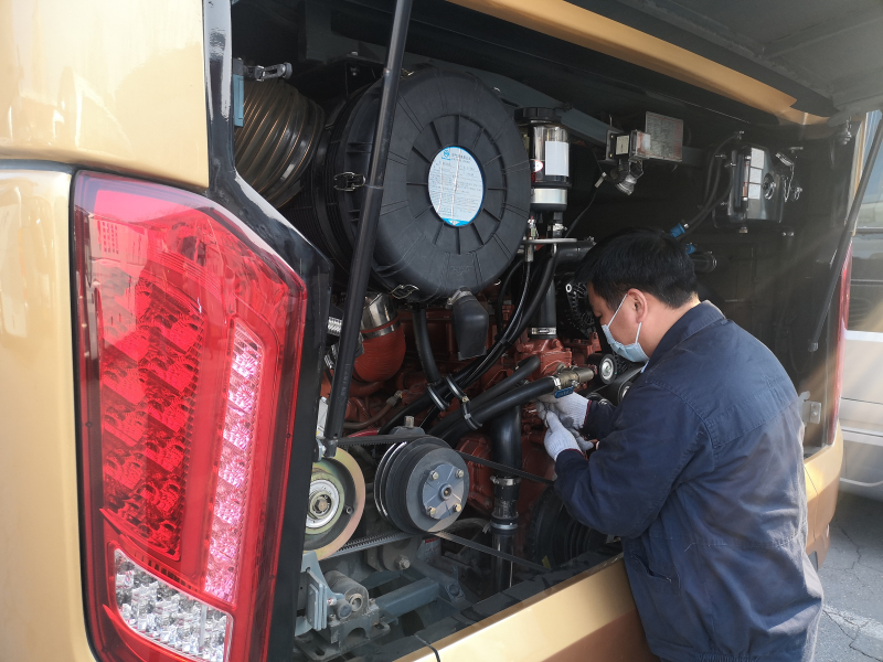 售后工程師對金旅領航者進行全面檢查