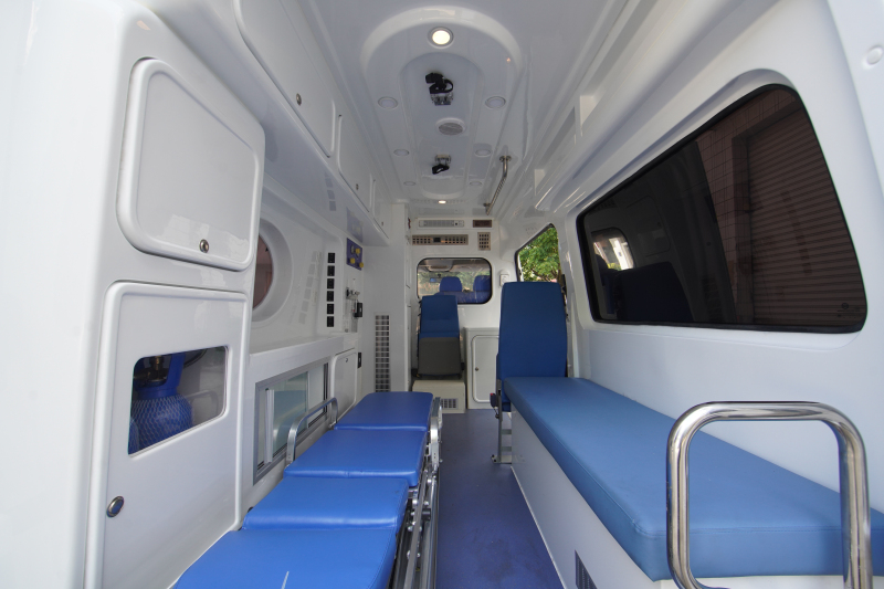 金旅領(lǐng)特負(fù)壓救護(hù)車首先具備普通救護(hù)車的基本功能。醫(yī)療艙內(nèi)部尺寸為3250mm×1790mm×1900mm(長/寬/高),配備救護(hù)擔(dān)架、氧氣瓶、排氣扇、消毒燈、對講機(jī)等急救設(shè)備。可以針對不同醫(yī)院和機(jī)構(gòu)的具體需求,車輛加裝例如除顫儀,呼吸機(jī),心電監(jiān)護(hù)等全套搶救設(shè)備,為救援開啟“加速度”,為患者的搶救爭分奪秒。