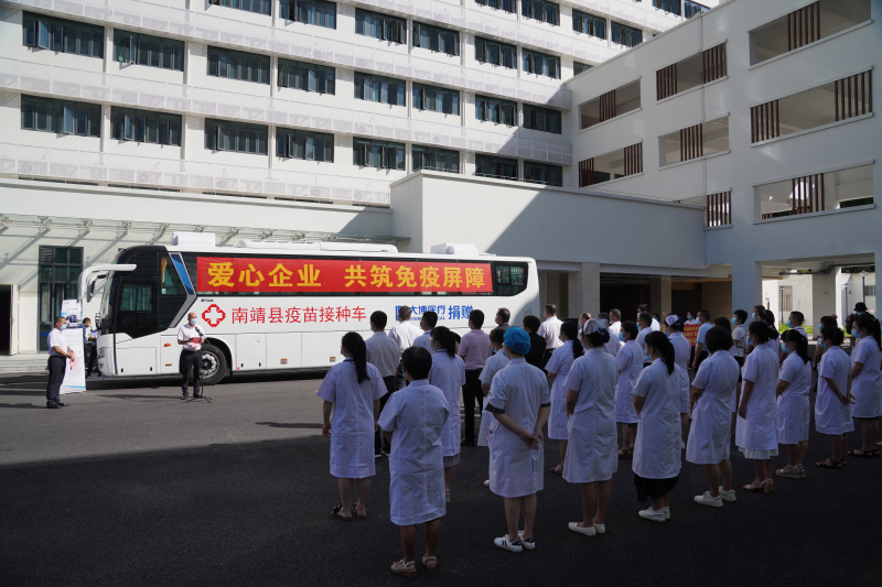 8月24日,大博醫(yī)療向南靖縣捐贈(zèng)的金旅疫苗接種車在南靖縣總醫(yī)院交付。中共南靖縣委,南靖縣人民政府,南靖縣新冠肺炎疫情防控指揮部、南靖縣衛(wèi)健局、南靖縣總醫(yī)院、大博醫(yī)療科技股份有限公司、廈門金龍旅行車有限公司等相關(guān)單位的領(lǐng)導(dǎo)和人員出席了交車儀式。