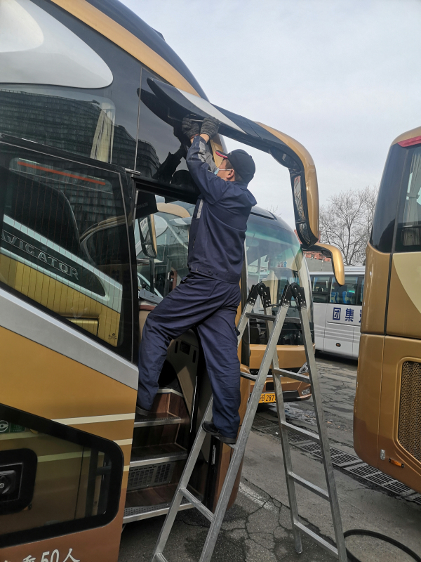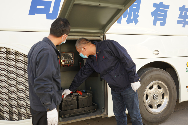 金旅服務(wù)團隊對車輛展開細致檢查,備戰(zhàn)2022全國兩會