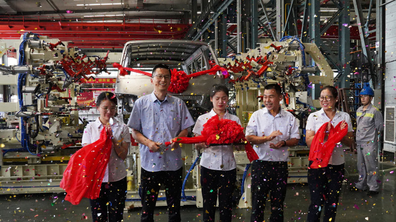 金旅海外銷售公司總經(jīng)理安敏為埃及KD項目夾具發(fā)運儀式剪彩(左二)