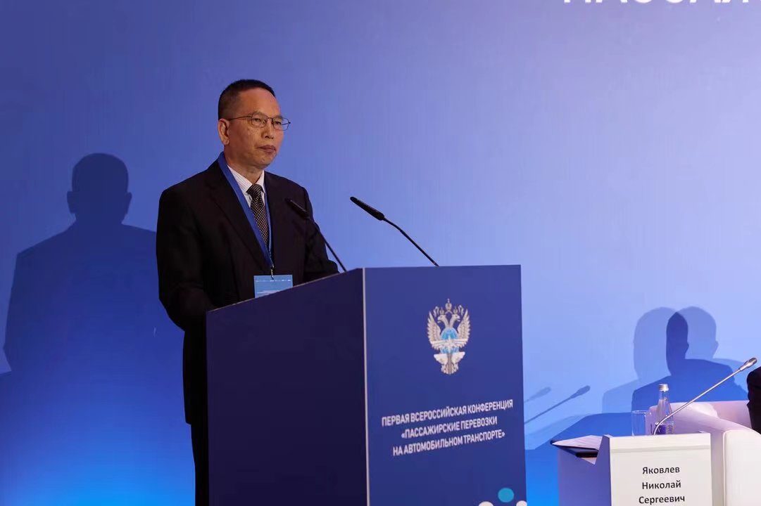 “安全和高質(zhì)量汽運(yùn)道路如何實(shí)施”等主題發(fā)表致辭。在會(huì)上,金旅副總經(jīng)理海外銷售總監(jiān)江永輝分享了金旅客車多年來在全球客運(yùn)領(lǐng)域累積的寶貴經(jīng)驗(yàn),以及在俄羅斯市場(chǎng)的發(fā)展與規(guī)劃,期待共同探討如何進(jìn)一步推動(dòng)公路客運(yùn)行業(yè)的創(chuàng)新和發(fā)展。