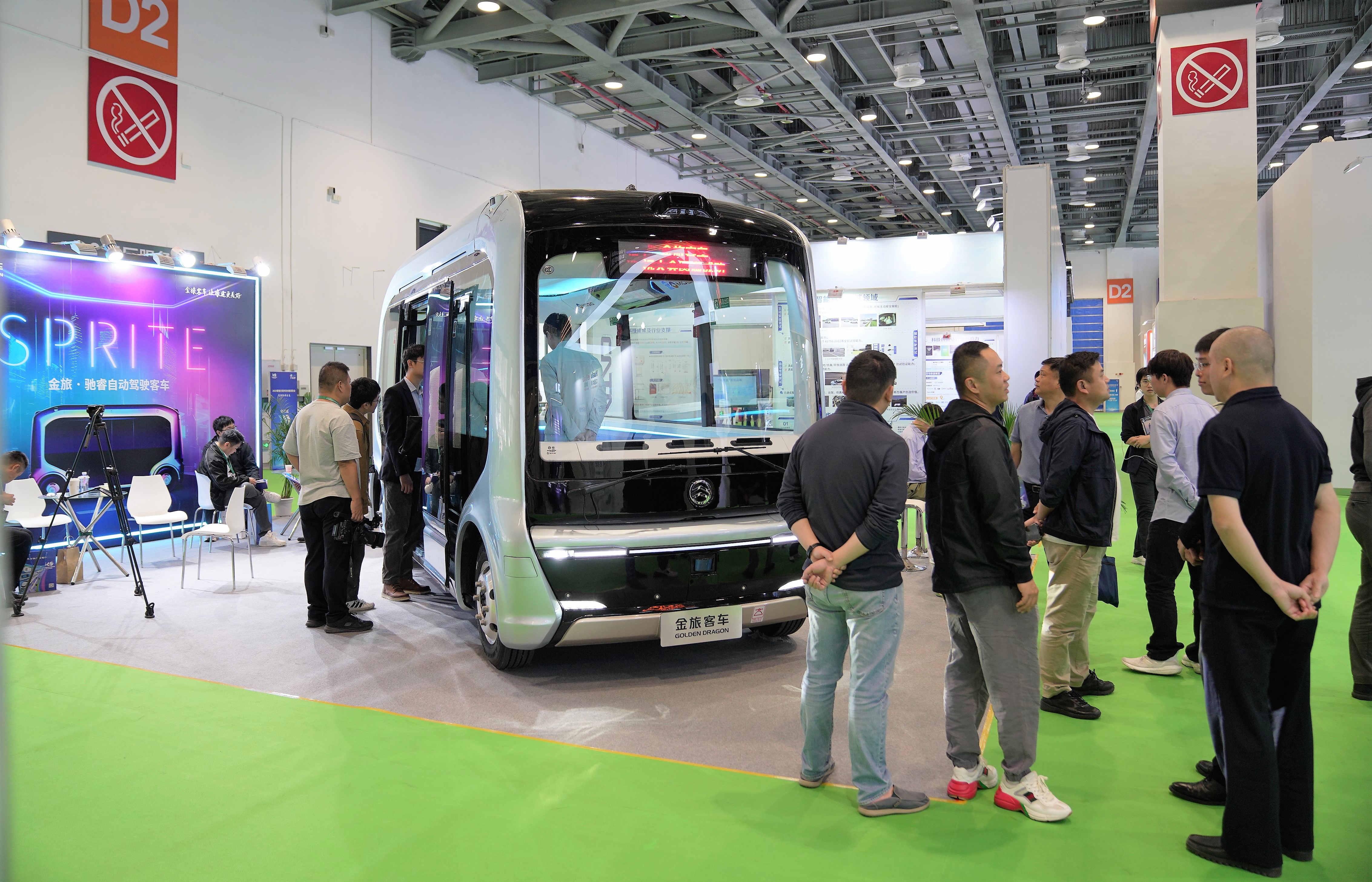 此次亮相智能交通科技創(chuàng)新展,被譽(yù)為新一代“網(wǎng)紅”自動(dòng)駕駛巴士的金旅馳睿,外型炫酷,科技感十足。整車(chē)采用綠色環(huán)保的純電驅(qū)動(dòng),續(xù)航里程可達(dá)360公里,最高運(yùn)行速度大于69公里/小時(shí)。車(chē)長(zhǎng)5.3米,車(chē)內(nèi)空間寬敞舒適,人機(jī)交互顯示屏、環(huán)抱式座椅,嵌入式無(wú)主燈燈光設(shè)計(jì),照明柔和舒適,超大觀(guān)景車(chē)窗,整車(chē)玻璃透光區(qū)域面積高達(dá)16.6㎡,打造了一個(gè)極具未來(lái)感的自動(dòng)駕駛乘坐空間。超寬電動(dòng)塞拉門(mén),門(mén)寬達(dá)到1200mm,配合低入口一級(jí)踏步設(shè)計(jì),讓上下車(chē)更方便、乘車(chē)體驗(yàn)更具人性化。