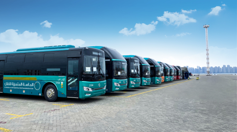 在碼頭待發(fā)運(yùn)沙特的金旅客車