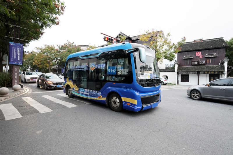 如果說,展會(huì)上揭示了未來(lái)世界的奇妙景象,那展會(huì)之外的智慧服務(wù)則讓我們確信,未來(lái)已在當(dāng)下。這幾天,車身貼上峰會(huì)藍(lán)色主設(shè)計(jì)圖的無(wú)人駕駛接駁車已陸續(xù)進(jìn)駐,在景區(qū)兩條接駁線上投入使用。而金旅的新一代無(wú)人駕駛網(wǎng)紅巴士“馳?!痹俅螕?dān)當(dāng)重任,以其卓越的性能和先進(jìn)的技術(shù),成為了大會(huì)的指定服務(wù)接駁用車,在黃金水岸大酒店、烏鎮(zhèn)景區(qū)P2停車場(chǎng)(“互聯(lián)網(wǎng)之光”博覽中心)之間往返。這是繼2019年金旅“星辰”無(wú)人駕駛巴士助力烏鎮(zhèn)開通全球首條城市開放道路“5G自動(dòng)微公交”示范線路以后,金旅的無(wú)人駕駛產(chǎn)品再次亮相烏鎮(zhèn)街頭。