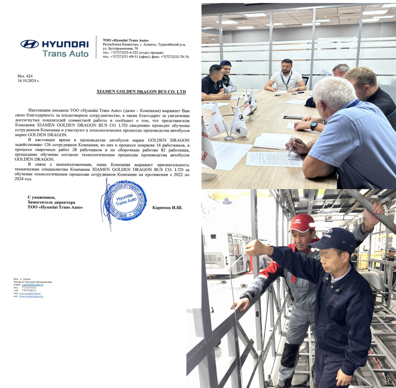 除了工程技術(shù)團(tuán)隊來中國“留學(xué)”,金旅客車還收到了3封感謝信,在信中哈方對金旅客車的當(dāng)?shù)貓F(tuán)隊絲毫不吝惜贊美之情——正是在金旅團(tuán)隊的幫助下,這條產(chǎn)線的產(chǎn)能從每日不足1輛,穩(wěn)定提升至每日2輛。
