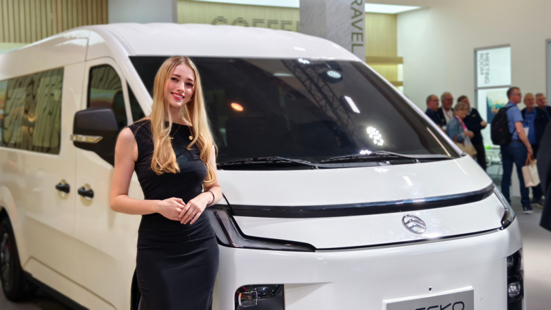 金旅客車的輕型車產(chǎn)品在海外一直有口皆碑,為滿足最新的市場需求,金旅推出了全新的新能源輕型商用車——GECKO。此次參展的GECKO展車,整車尺寸5400×1979×2185mm,采用2+2+2+3的座椅布局,配備寧德時(shí)代83.67度電池,純電續(xù)航里程在WLTP工況下可達(dá)460km,且具備L2+級智能輔助駕駛功能,集成8顆超聲波雷達(dá)、4顆環(huán)視攝像頭、DMS駕駛員監(jiān)測等傳感器,讓駕駛更輕松更安全。