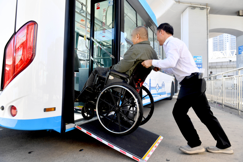 新車(chē)便民設(shè)計(jì),方便坐輪椅乘客上車(chē)。毛朝青 攝