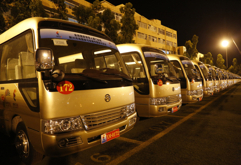 9月5日,金磚國(guó)家領(lǐng)導(dǎo)人第九次會(huì)晤在廈門圓滿落下帷幕。作為全球新興發(fā)展國(guó)家領(lǐng)袖齊聚的一場(chǎng)盛事,此次會(huì)晤吸引了全世界的目光。廈門的美麗通過(guò)全球媒體向世界綻放。在無(wú)數(shù)的快門中,在長(zhǎng)短的鏡頭里,人們也經(jīng)??吹浇鹇每蛙嚵聋惖纳碛啊?huì)晤期間,作為官方指定公商務(wù)用車,201輛金旅客車為大會(huì)提供通勤服務(wù),其中50輛金旅考斯特服務(wù)會(huì)晤核心區(qū),為參加金磚會(huì)晤的各國(guó)政要提供高端接待服務(wù)。