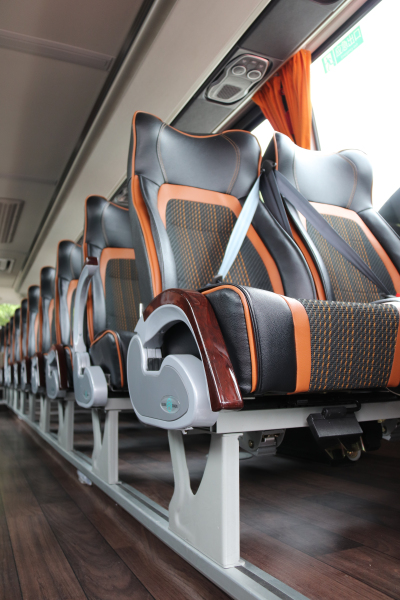 座椅是客車(chē)內(nèi)占據(jù)空間最大也是最能體現(xiàn)內(nèi)飾風(fēng)格的配置,新凱歌放棄了原有穩(wěn)重的商務(wù)風(fēng)格,采用了賽車(chē)風(fēng)格的座椅,這一大膽的設(shè)計(jì)贏得了各方認(rèn)可。在巡展現(xiàn)場(chǎng),多位客戶都對(duì)新凱歌的內(nèi)飾變化感到驚訝,尤其對(duì)座椅設(shè)計(jì)表示認(rèn)可。新凱歌的座椅采用帶狀造型,富有包裹性的設(shè)計(jì)貼合人體坐姿,復(fù)合材料的面料既顯檔次又不失舒適,整體配色也很跳躍,符合了當(dāng)前很多從事旅游業(yè)務(wù)客戶的需要。