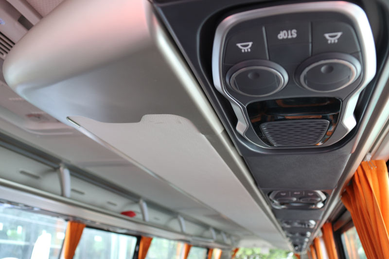 除了上述設(shè)計(jì),在一些細(xì)節(jié)上的處理上讓人感到設(shè)計(jì)者的用心。比如,行李架并沒(méi)有貫通到車(chē)廂尾部,這樣可以為倒數(shù)第二排乘客留有足夠的頭部空間;在儀表臺(tái)處留有多處檢修口,便于車(chē)輛后期檢修。