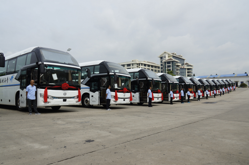 一見鐘情后,王總團隊和金旅公司根據(jù)青海市場的需求,反復(fù)磋商,確定了這20輛豪華旅游商務(wù)車的配置。他們選中的金旅新凱歌車型是經(jīng)典凱歌的全新升級車型,通過造型、設(shè)計、工藝等全方位的提升,成為金旅客車布局客運、旅游、通勤大巴市場的新一代戰(zhàn)略重點車型,具有高收益、低油耗、安全領(lǐng)先和舒適升級等特點。這20輛車座椅采用2+1排列的大商務(wù)真皮座椅、整車34個座位、高鐵式窗簾、內(nèi)飾采用水波紋造型中頂板、座椅安裝USB接口等配置,提升了乘坐的舒適性,讓乘客的旅途更加輕松愜意。