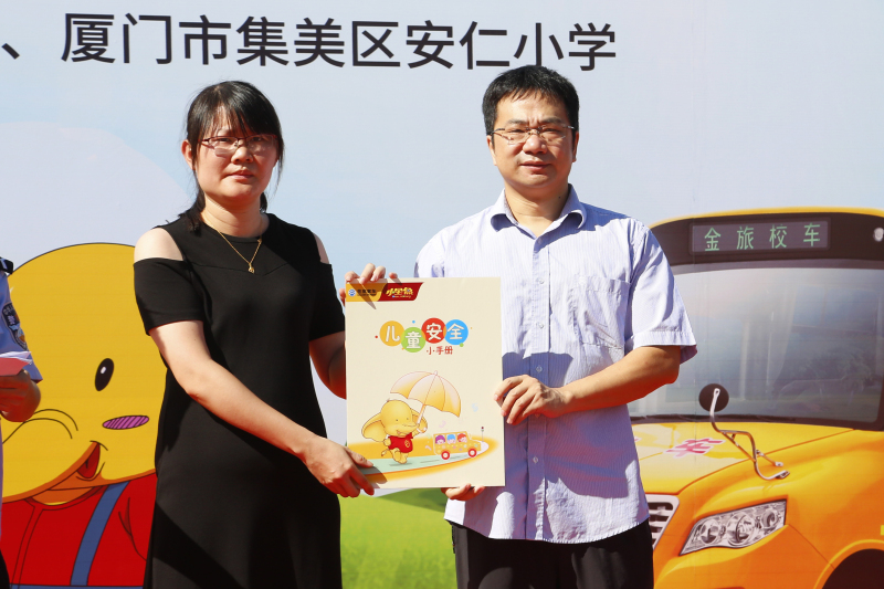 在活動的最后,金旅客車工會主席王立志代表金旅客車向安仁小學(xué)贈送了一千份《兒童安全手冊》,該手冊是金旅特別制作,希望通過漫畫的形式,讓同學(xué)們在生動有趣的閱讀中,學(xué)習(xí)并增強安全意識,加強面對各種危險時的應(yīng)急能力。