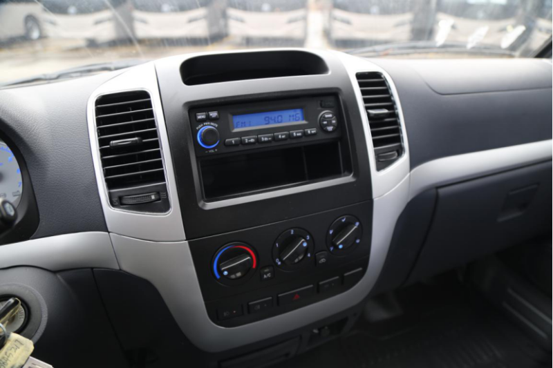 中控臺(tái)設(shè)有儲(chǔ)物格,可以放手機(jī)、票據(jù)等物品。收音機(jī)為標(biāo)配,高配車(chē)型可配置DVD播放機(jī)。下方為空調(diào)控制區(qū)域,功能簡(jiǎn)單實(shí)用。