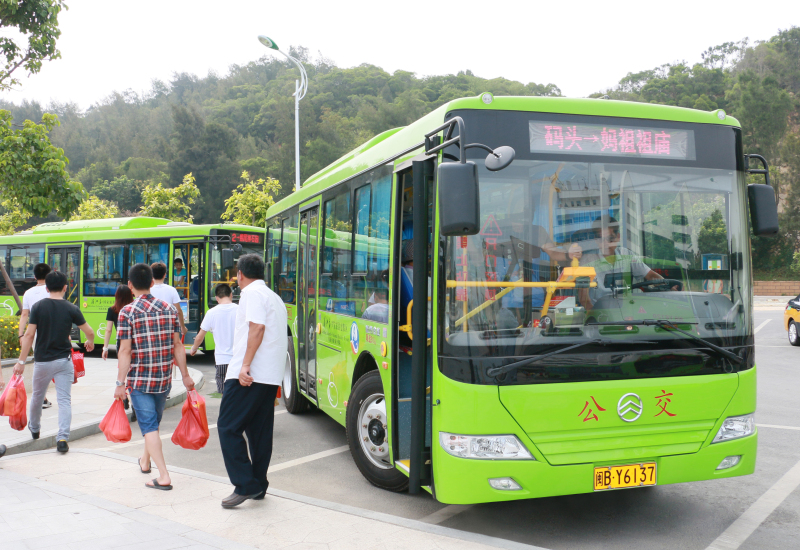 2015年,福建省首批26臺8.5米純電動金旅公交車投放莆田湄洲島,目前島內(nèi)運(yùn)營的35臺公交車全部為金旅純電動公交。湄洲島現(xiàn)已發(fā)展成為國內(nèi)外有名的媽祖圣地,每年媽祖文化節(jié)吸引著大量海內(nèi)外人士觀光旅游追根尋祖。